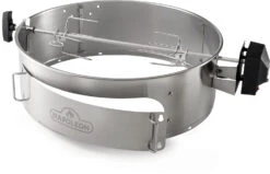 Zur Montage wird zunächst die Garraumerweiterung auf den Kessel aufgesteckt. Der Drehspieß kann nun an den oben angebrachten Halterungen eingelegt werden, bzw. der Motor angebracht werden. Durch die Garraumerweiterung bietet sich deutlich mehr Platz in der Kugel und damit auch optimale Bedingungen für eine perfekte Hitzeverteilung innerhalb des Garraums.