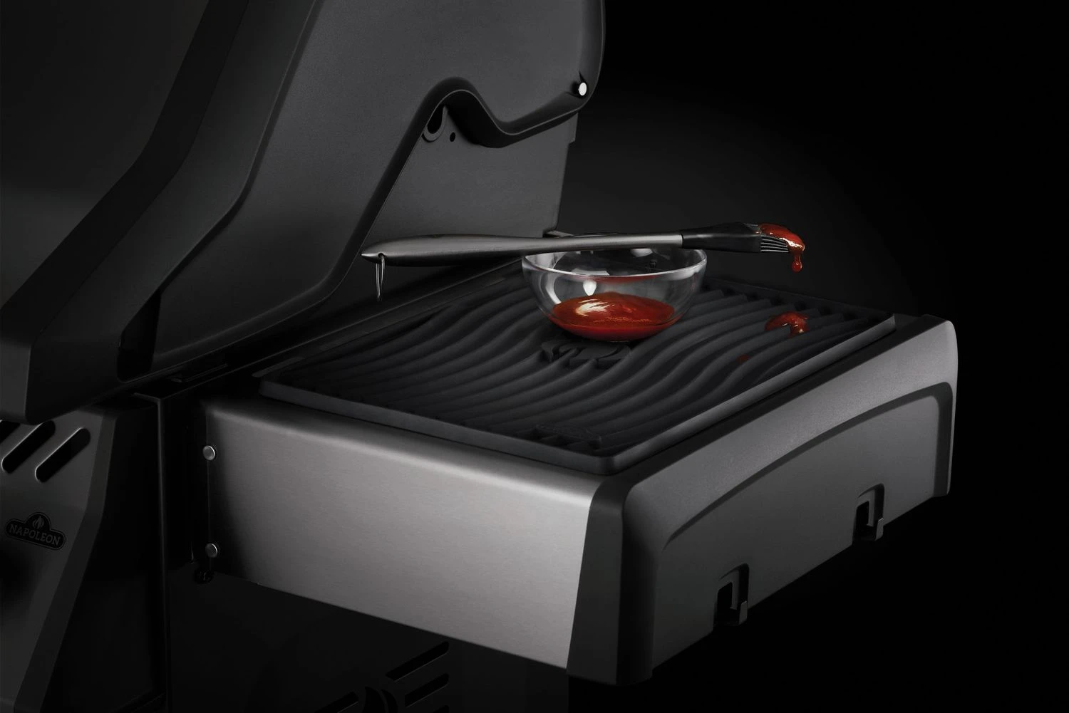 Die Napoleon Silikonmatte ist die perfekte Besteckablage für den Gasgrill. Einfach auf die Seitenablage legen und das Grillbesteck zwischen den Arbeiten am Grill darauf ablegen.